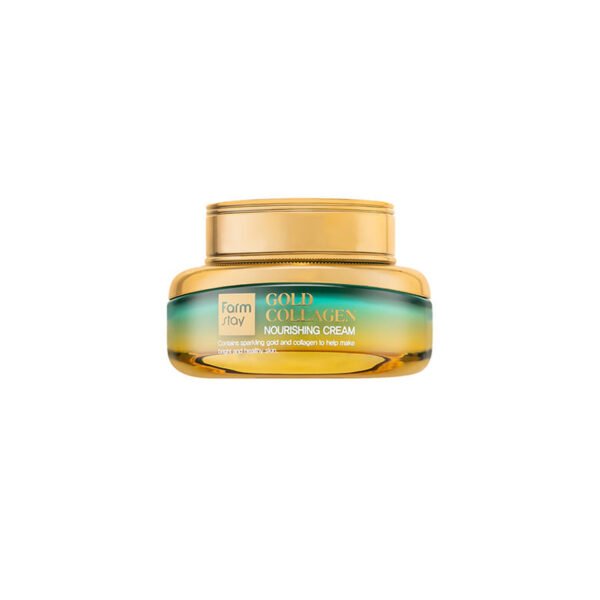 FarmStay Gold Collagen Nourishing Cream is enriched with collagen and gold particles for deep hydration, firming, and radiance. It nourishes dry skin, enhances elasticity, and combats the first signs of aging. It absorbs quickly, leaving the skin soft, smooth, and radiant.