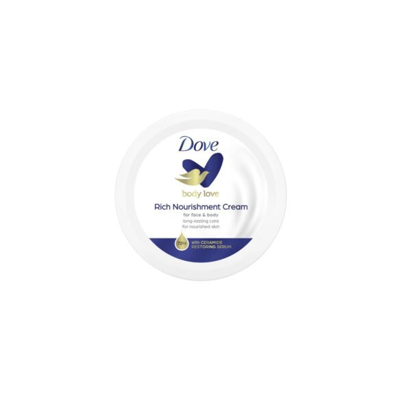 Η Dove Rich Nourishment είναι κρέμα κατάλληλη για χρήση σε σώμα και πρόσωπο, με πλούσια υφή που ενυδατώνει και θρέφει βαθιά, αφήνοντας το δέρμα απαλό, μεταξένιο και προστατευμένο από την ξηρότητα, χωρίς να κολλάει.